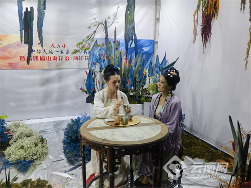 中华传统生活美学(宋时四雅)体验学习——在活动会场的展示体验区,由云南省对台交流基地弘益大学堂邀请专家老师现场授课,带动两岸嘉宾、各界群众,共同学习体验中华传统美学——插花、点茶、香道。唱响两岸同胞共同传承弘扬中华优秀传统文化的良好社会风气。