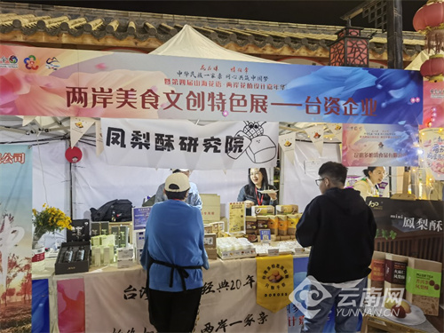 昆台特色美食及民族文化创意非遗展——昆明市各县(市)区、开发(度假)区、昆明台资企业协会组织具有代表性的昆台两地特色美食、文创产品、民族文化、非遗文化作品进行展示,有参展企业69家,其中台企20家?;疃评ヌㄌ厣朗?、花卉、文创、民族文化、非遗文化等内容,为昆台两地搭建经贸交流与合作的平台,促进昆台两地经济文化融合发展。